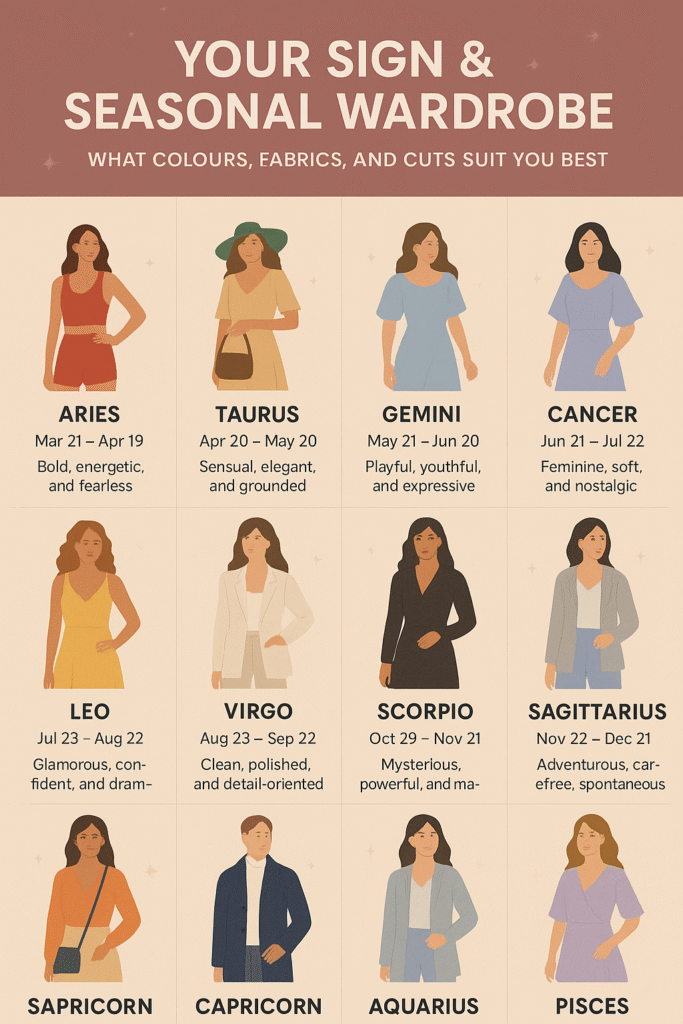 Your zodiac sign not only shapes your personality but also influences your sense of style, preferences, and how you express yourself through clothes. Whether you’re dressing for sunny summer days or cozy winter nights, your zodiac can point you toward colours, fabrics, and cuts that naturally complement your cosmic energy.